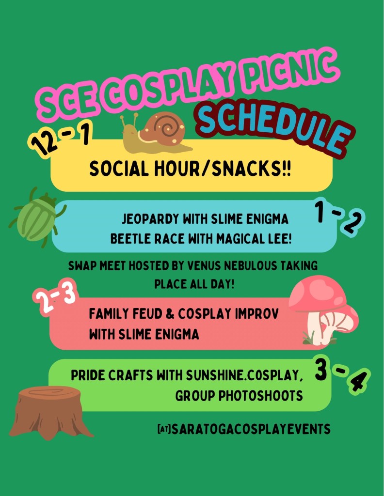 As guests join us during the first hour feel free to greet friends, greet new friends, snack and enjoy! Starting around 1:00 PM will be our first activity! Participation not required, only participate in what you feel like doing but we promise a day of fun!